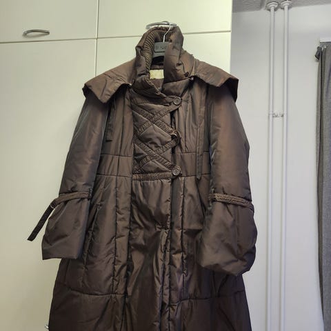 Hupullinen (irroitettava) takki , koristevetoketjut lantion sivuilla, vyö.