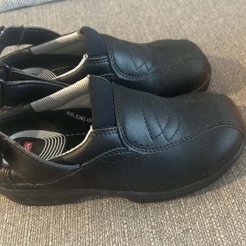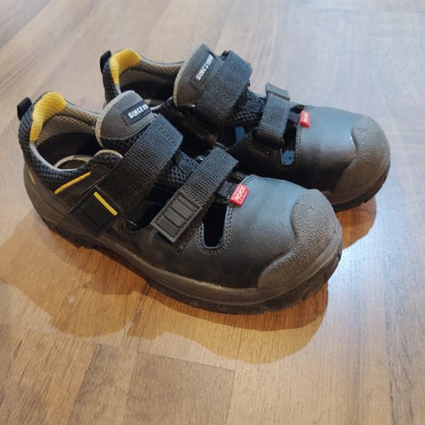 Edessä tarra kiristys sekä kantapään remmi tarralla säädettävissä.