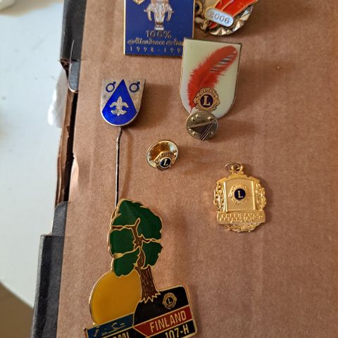 Lionsklubin leijonia, pinssejä ym.