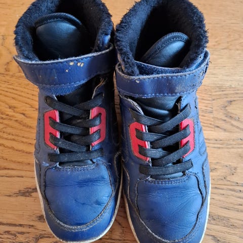 Hieman jo kärjestä kuluneet mutta silti vielä käyttöaikaa jäljellä. Lämmin vuori, joustavat nauhat ja tarra.
