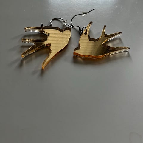 90-luvulta peräisin olevat hopeiset haarapääskyt nappikorvakoruina.