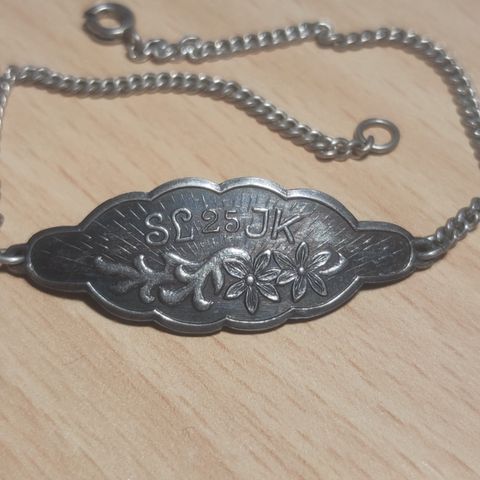 Hopeinen kullattu hevosenkenkä, kaiverrus "Vermo 1984". Leimat Velj. S, 830, vuosileima G8. Mitat 3,4 x 3,4 cm, paksuus 2 mm.