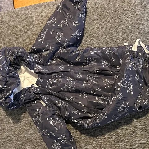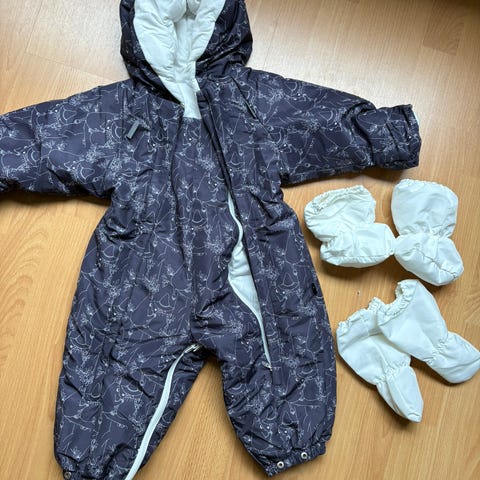 Haalarin huppu ja hanskat ei irrotettavissa.