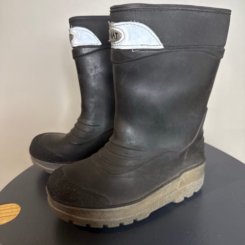 Mustat vuorelliset kumisaappaat. Irtopohjallisen pituusmitta 15.8cm. Ok kuntoiset, mielestäni melko kevyet. Savuton, eläimetön talous. Nouto tai lähetys, jolloin kulut ostajalle. Kulkeutuu arkisin kanta-Kurikkaan tai Vaasaan.