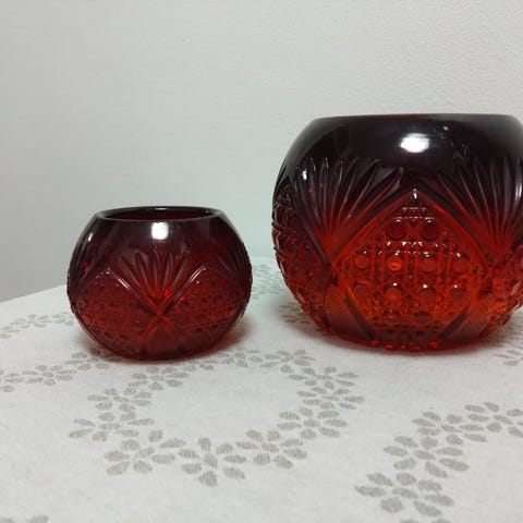 Kaipaavatko siis hedelmäsi säilytyskulhoa? Kelluvat kynttiläsi omaa lasimertaan? Itse istuttelen lasikulhoihin kukkia. Tämä hyvin koristeellisen eläväinen vanha lasikulho on halkaisijaltaan yläosasta noin 26cm, (pohjan halkaisija on noin 10cm) ja korkeus on noin 10cm. Tämä vaikuttaa ehjältä, jos nyt joku aivan olematon nirhauma on tunnettavissa. Tai virheitä en nyt heti isommin ainakaan havaitse. Lasi on niin kuvioitua ja täten röpelöistä, että virheitä saa kyllä etsiä, jos haluaa löytää. Enkä viitsi.