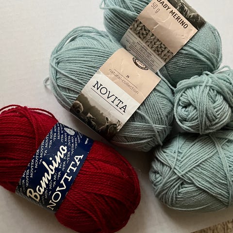 6 kerää Novita Wool -lankaa esim. vauvojen ja lasten neuleisiin. Koostumus: 100 % villa, keräkoko: n. 50 g = n. 135 m. puikot: 3½.