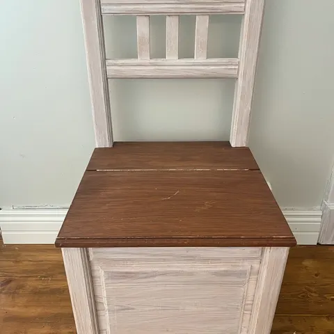 Puinen tukeva ja painava arkkutuoli Lapista. Tuolissa jonkun verran pieniä kolhuja. Tuolin istuinkorkeus 44cm, korkeus 85cm, leveys 44cm ja syvyys 43,5cm.. Nouto Nummenmäeltä ja maksu käteisellä.