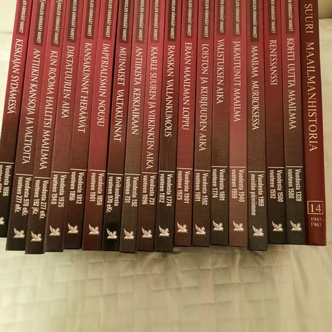 Kansakuntien vaiheet kirjasarja 1-5,kunto hyvä,vaikka koristeeksi hyllyyn.