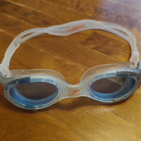 Hyväkuntoiset lasten uimalasit. Uimalasien merkki on Speedo.