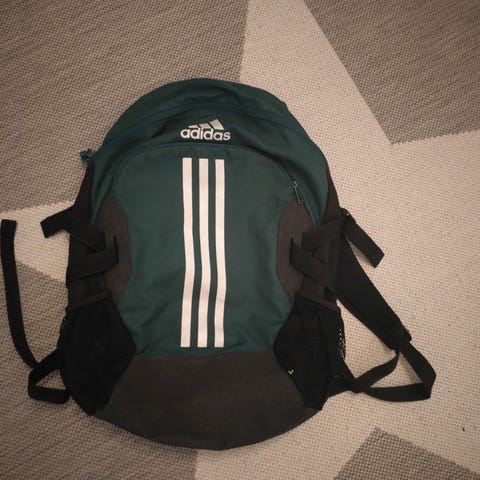 Hyvässä kunnossa oleva vaaleanpunainen Adidas-reppu