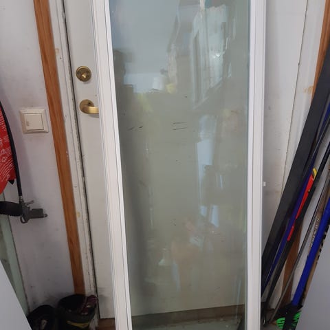 Sisäikkunat korkeus 97,50, leveys 54,50 cm. Ulkopoka K 97,50 L 53,50.