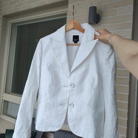Myydään ESPRIT jakku bleiseri koko 36. Tumma, pienikuvioinen kangas, jonka yleisvaikutelma on tumma harmaa. Kaunis muotoonleikattu suht lyhyt malli. Hihan vuori raidallinen. Käyttämätön.