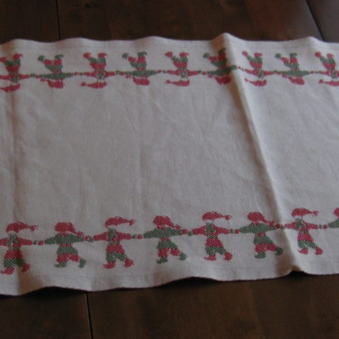 5. punainen vintage pöytäliina 21×58cm. 2,50eur