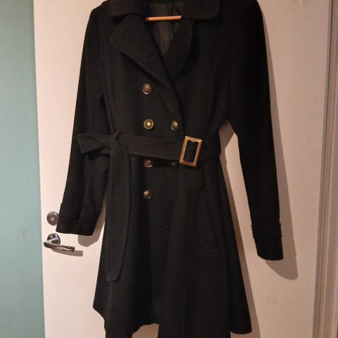 Myydään beige villakangastakki. Merkki Date by damo. Kokolappu puuttuu.