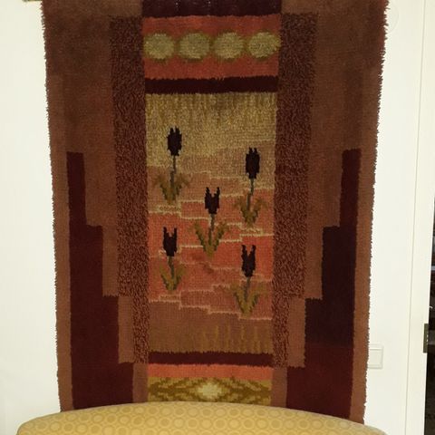 Myydään erittäin siisti ja hyväkuntoinen iso ryijy 50-60-luvulta. Mukana metalliputki, jonka saa sujautettua ryijyn yläreunaan helpottamaan kiinnitystä.