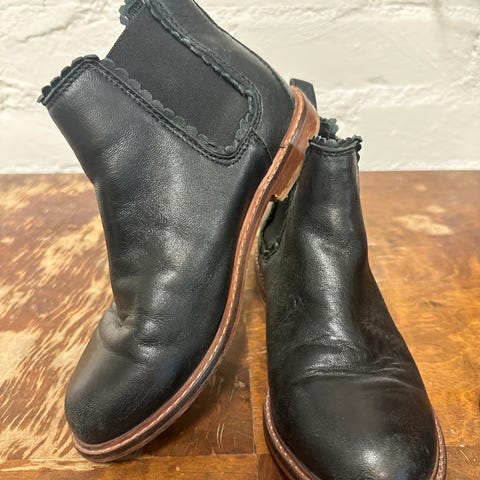 Myydään kuvan nilkkurit, hieman kulumaa kärjissä, kantapäässä ja sivussa. Pinta arviolta aitoa nahkaa, tumman ruskea keinonahkaa. Sisämitta n. 21,5-22cm. Kiinteät pohjalliset ja sisäpuolella vaalea, teddyvuori takaosassa. Kärjessä ei tunnu olevan.