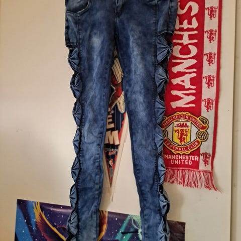 Vaaleansiniset farkut koko 38. Uutena ostettu. Ehjät ja hyväkuntoiset.