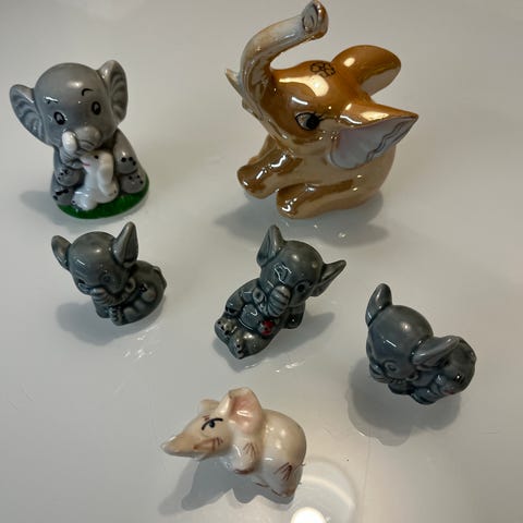 Kolme vanhaa, pientä posliininorsua 80-luvulta.