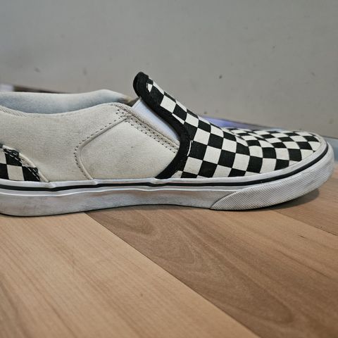 Aidot Vansin slip-on tennarit.Kitin väriset.Erittäin pehmeäpohjaiset (Ultracush) ,ja melko leveää mallia. Kuminauhat ovat sivuista hiukan löystyneet,joten sopii "rintavampaankin" jalkaan.Puhtaat,tahrattomat ja kumppareitten löystymistä lukuun ottamatta täysin ehjät.Siistit myös sisäpuolelta.