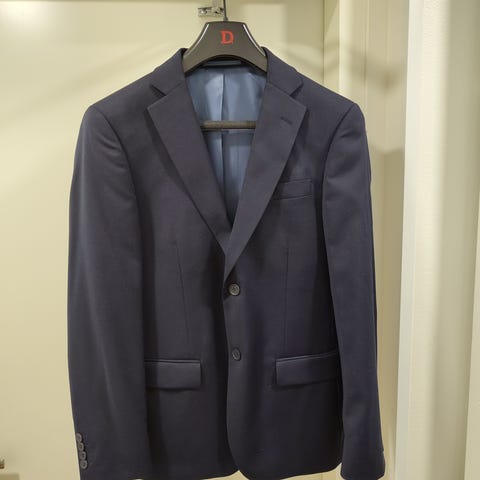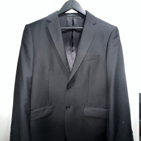 Dressman puvun musta takki, koko long 48 slim fit. Takki on hyvässä kunnossa. Mukaan saa käsityötaitoinen Create housut, näkyy kuvassa. Sauma sivusta auki ja toinen takataskun nappi irti. Käyttänyt 180cm hoikka poika. Tästä edullinen setti tuleviin juhliin.