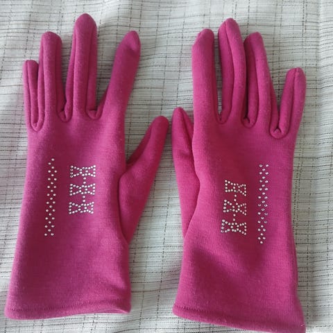 Erinomaisessa kunnossa olevat (todennäköisesti ihan käyttämättömät) pinkit pitkävartiset hansikkaat / hanskat / käsineet villa-akryylisekoitetta. Aikuisen reiluhko koko.