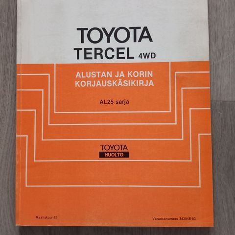 Alustan ja korin korjauskäsikirjoja, malleina Corolla; Starlet; Carina E; Corona ja Carina II; Camry 4WD.