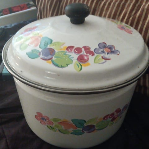 Myydään valkoinen vintage kattila.