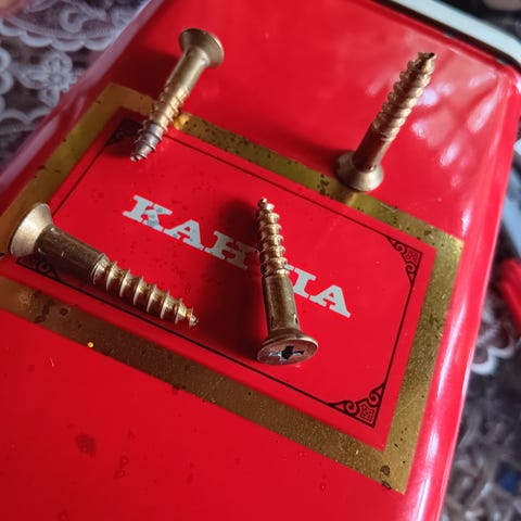 Puuruuvi 3x25 uppokanta , DIN7997 , pozidriv kanta , messinkiruuvi , 53 kpl