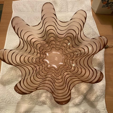 Vaaleanpunainen Nanny Still Riihimäen Lasi Koralli malja. Ehjä, tarra kulunut, lasin sisässä pari pientä ilmakuplaa, pohjalla joitain pieniä naarmuja jotka näkyy heijastelemalla.