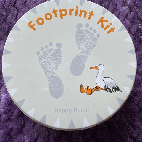 Käyttämättä jäänyt eli täysin uusi ja avaamaton vauvan 3D kipsivalusetti ja muistolaatikko esim. babyshower tai ristiäislahjaksi.