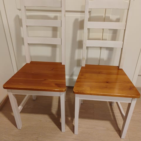 Tuoli mänty pirttiryhmästä 4 kpl. Istuinosassa hiukan kulumaa pienellä fiksauksella siistiksi. Tukevat hyvä istua.