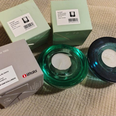 Myydään 5 kpl eri sävyisiä vihreitä Marimekko tuikkuja sekä 1 kpl kirkas Iittalan Ballo tuikku. Uudenveroisia, myydään tarpeettomina.