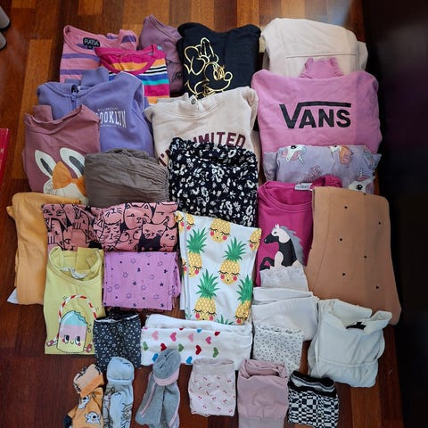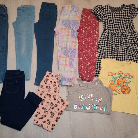 Myynnissä on vaatepaketti tytöille, koko 134/140. Hyväkuntoinen. Hinta 10 eur.