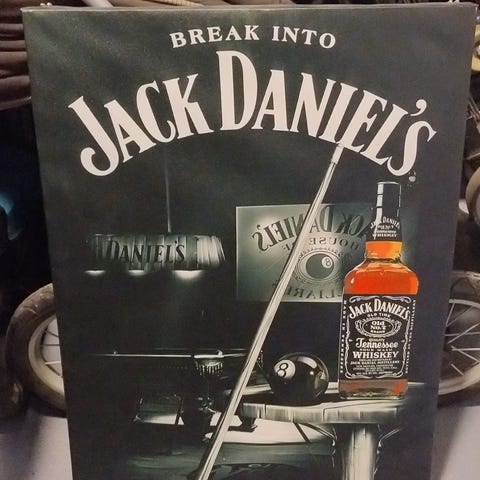 Myydään uusi isokokoinen Jack Daniels -taulu, taulussa muovi päällä.