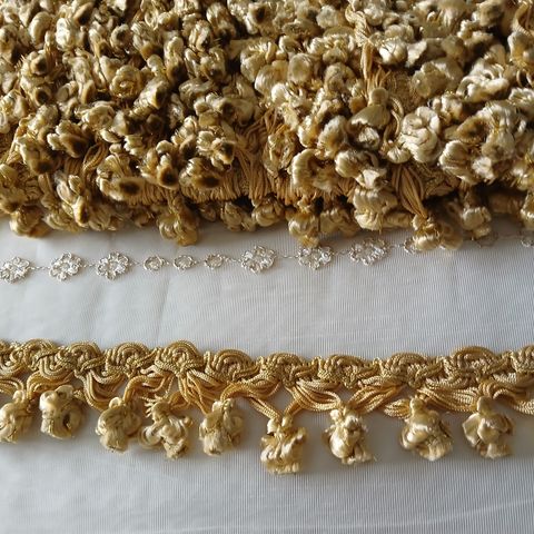 Ruskea kangasnauha, valkoisia palloja, taustapuoli yksivärinen ruskea, käyttämätön,