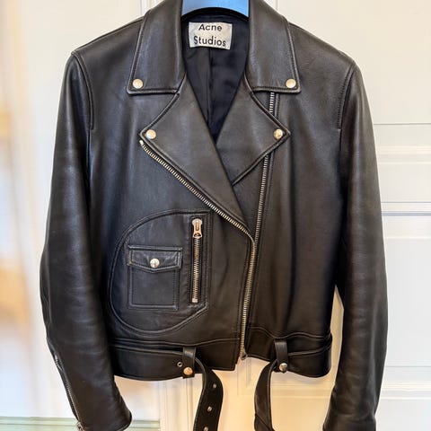 Myyn upeaa Acne Gibson- bikeritakkia tummanruskeasta nahasta. Tämä on korkealaatuinen takki pehmeästä ja mukavasta nahasta.