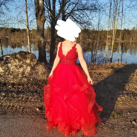 Ihana musta tanssimekko. Edessä hopeanvärisiä koristeita. Olkaimet ommeltu itse. Kerran mekolla tanssittu. 140e