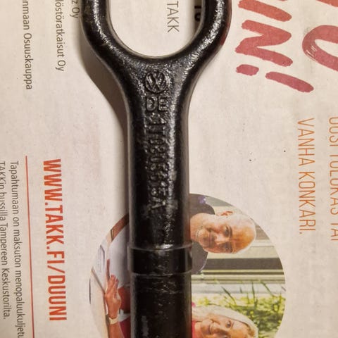 VW tunkkisetti. Kuvienmukainen. Sisältää mm. tunkin, rengasavaimen, vetosilmukan.