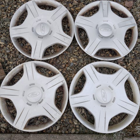 Kuvan mukaiset Ford Fiestaan sopivat 13” peltivanteet. Vanhat ja yllättävän siistissä kunnossa. Ruoste ei ole vielä pahasti iskenyt kiinni.