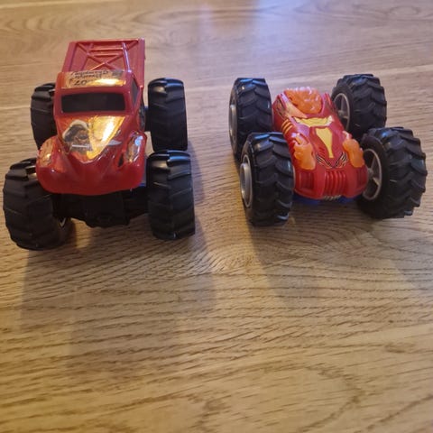 Erilaisia ajoneuvoja ym. Vihreä auto on muunnettava robotti, mutta se jumittaa.