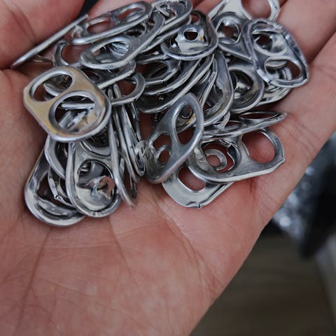 Kierrätetyt vetoklipsit alumiinista, väriltään hopea. Sopivat erilaisiin askartelu- ja kierrätyskäyttöihin. Pakattu muovipusseihin helpottamaan säilytystä ja kuljetusta.näitä olis neljä pussia .. sisältyy lähetys R-kioskin pakettina ..