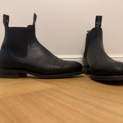 Ostettu 12/2021 ja pidetty vain vähäisen keväisin ja syksyisin. Käytetty R.M. Williamsin omaa nahanhoitoainetta ylläpidossa. Muutama naarmu kengän kärjessä.