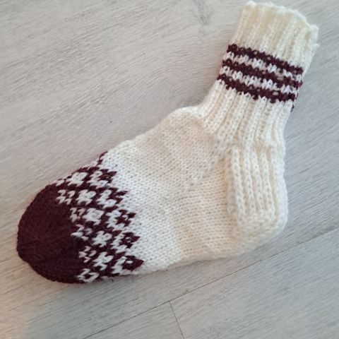 Käsityönä tehdyt villasukat koko noin 26.