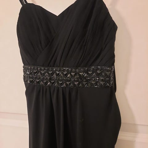 Myydään kerran käytetty iltapuku/juhlapuku koko 36 (oma vaatekoko 36-38). Helmaa hieman lyhennetty (oma pituus 170cm+korot 5cm). Mekko helppo huoltaa, mm. silitys onnistuu silitysraudalla miedolla lämmöllä. Etuosaan lisätty strassikoriste, jonka saa halutessaan myös pois. Väri petrooli. Mukaan saa pukupussin. Koiratalous.