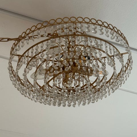 Tšekkiläinen hieno kristallinen kattokruunu ostettu Stockmannilta 70-luvulla. Vintage ja ajaton, hienosti säilynyt, ei virheitä. Toimii hienosti ja lamput kaupan päälle. Korkeus 53cm ja halkaisija 50cm.