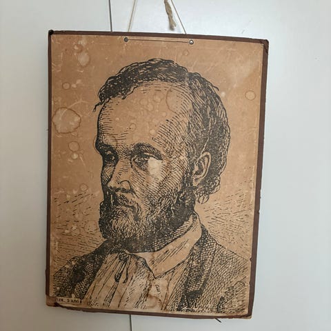 Ilves opetustaulu. Kuvanmukaista ajan patinaa ja murtuma reunassa