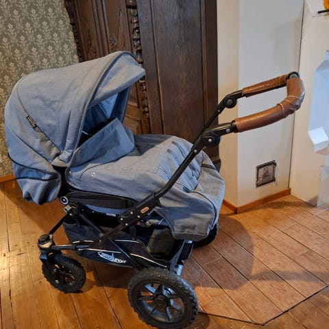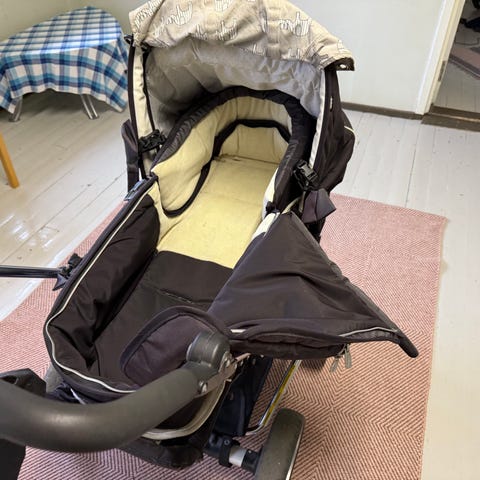 Emmaljunga yhdistelmävaunut/rattaat hienolla retrotyylisellä kuosilla.
