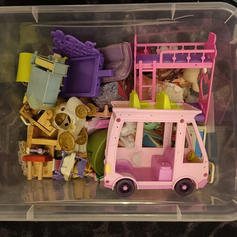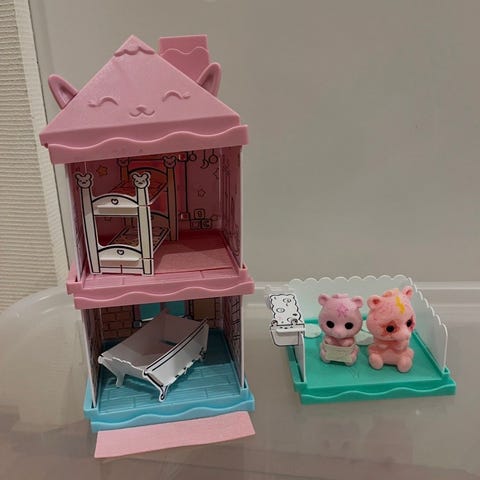 Mini lalaloopsy -nukkejen kannettava talo. Leikitty, ei kovin siisti enää.