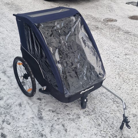 Yhdistä kärry pyörääsi ja olet valmis matkaan. Polisport Trailer sopii myös pienien kuormien kuljettamiseen. Muista pyöräillessäsi laittaa kypärä myös matkustajille!
