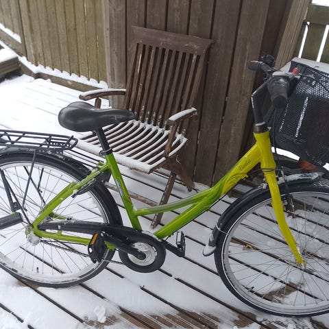 Tavaratelineellä kulkee mukavasti reppu tai varustekassi. Pyörässä on käsijarrun lisäksi jalkajarru, joka lisää turvallisuutta yllättävissä tilanteissa. Runkolukko ja seisontatuki kuuluvat myös vakiovarusteisiin.